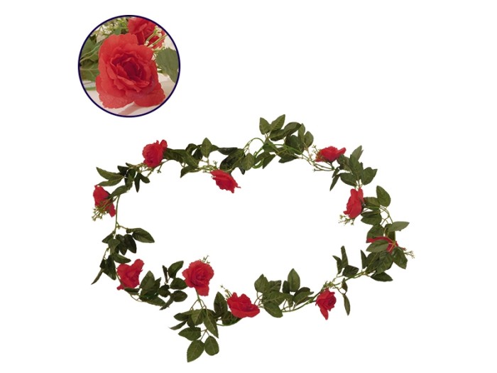 Τεχνητό Κρεμαστό Φυτό Διακοσμητική Γιρλάντα Μήκους 2.2 μέτρων με 10 X Μεγάλα Τριαντάφυλλα Κόκκινα 09002