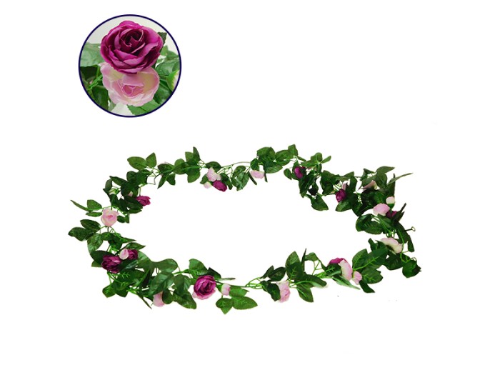 GloboStar® 09010 Τεχνητό Κρεμαστό Φυτό Διακοσμητική Γιρλάντα Μήκους 2.2 μέτρων με 32 X Μικρά Τριαντάφυλλα Μωβ