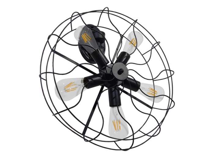 GloboStar® FAN 01163 Vintage Industrial Φωτιστικό Τοίχου Απλίκα Πολύφωτο Μαύρο Μεταλλικό Πλέγμα Φ46 x Μ22 x Π46 x Υ46cm