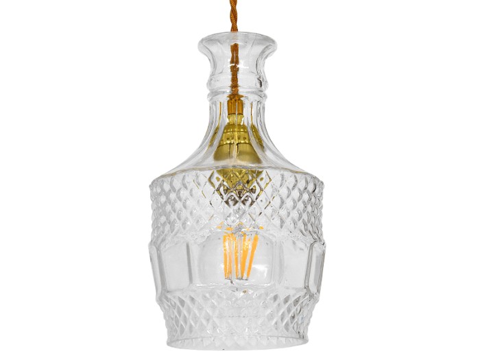 GloboStar® WHISKEY 01513 Vintage Κρεμαστό Φωτιστικό Οροφής Μονόφωτο Γυάλινο Διάφανο Φ13 x Υ22cm