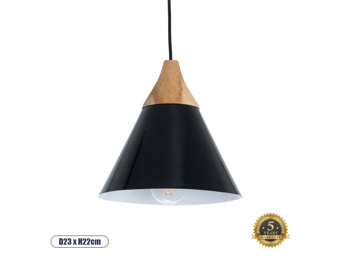 GloboStar® SHADE 00906 Μοντέρνο Κρεμαστό Φωτιστικό Οροφής Μονόφωτο Μαύρο Μεταλλικό με Ξύλο Καμπάνα Φ23 x Υ22cm