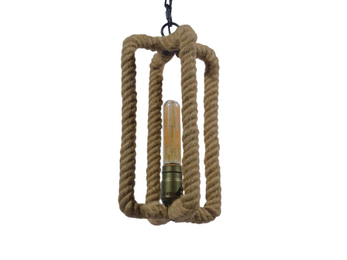 - Τεχνοτροπία Φωτιστικού: Μεταλλικό με Μπεζ Σχοινί
