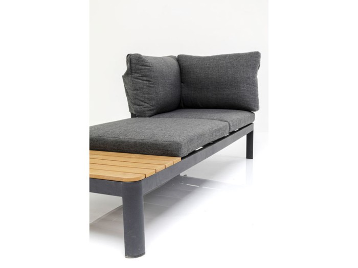 Ανάκλιντρο εξωτερικού χώρου κατασκευασμένο από σκελετό αλουμινίου ηλεκτροστατικής βαφής και πλαστικό ξύλο WPC. Τα μαξιλάρια είναι από ύφασμα πολυεστέρα.