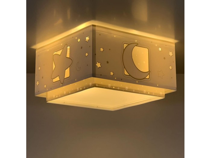 Παιδικό φωτιστικό οροφής τύπου πλαφονιέρα κατάλληλο για γενικό φωτισμό και όλες τις δραστηριότητες των παιδιών. Είναι διπλού τοιχώματος από άκαυστο λεπτό πολυπροπυλένιο. Τοποθετείται εύκολα και γρήγορα και είναι εφοδιασμένο με δύο θέσεις λαμπτήρων LED για πραγματικά άπλετο φως στο δωμάτιο. Παρέχεται διαχυτής φωτός για τις μικρότερες ηλικίες που προσφέρει ομοιόμορφο φωτισμό αλλά και προστασία. Κατασκευασμένο εξ ολοκλήρου στην Ευρώπη το Moonlight Gray πλαφονιέρα οροφής, συμπληρώνει τα υπόλοιπα παιδικά φωτιστικά της συλλογής κομοδίνου, απλίκα ή νυκτός.