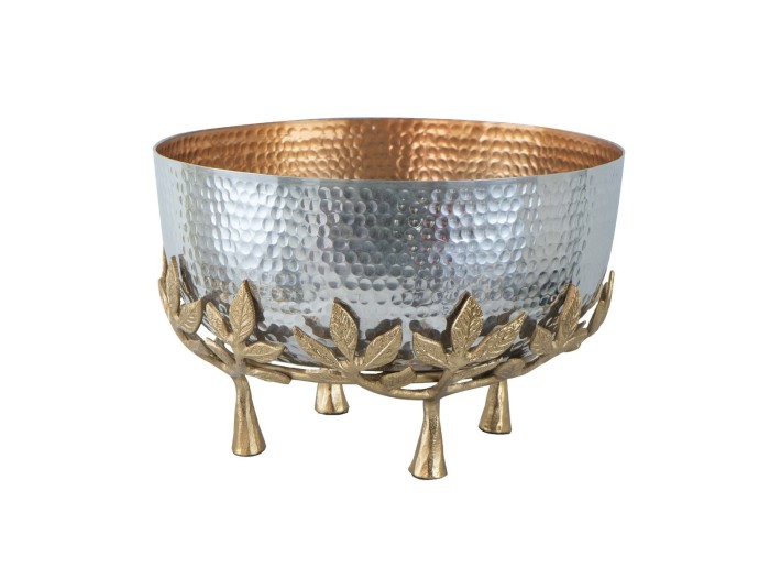 Artekko Branch Διακοσμητικό Μπολ με Βάση Κλαδί Μεταλλικό Ασημί Χρυσό (34x34x23)cm