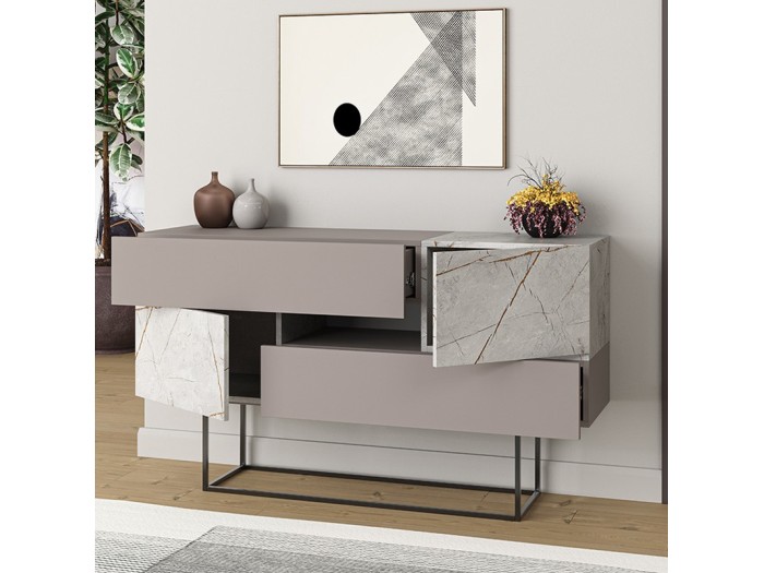 Artekko Eros Mocha Μπουφές MDF/Μέταλλο Γκρι/Λευκό (145x40x82)cm