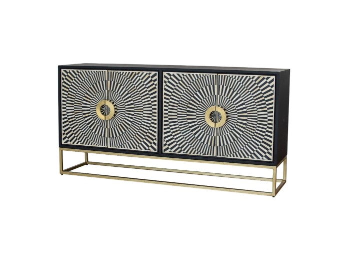 Artekko Μπουφές 160x40x80 δίπορτος μάυρος-λευκός με χρυσή μεταλλική βάση