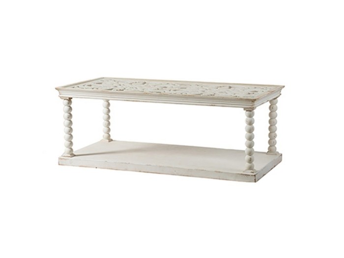 Artekko Noo Τραπέζι Σαλονιού Ξύλινο με Σκαλιστό Καπάκι και Γυαλί (122x61x47)cm