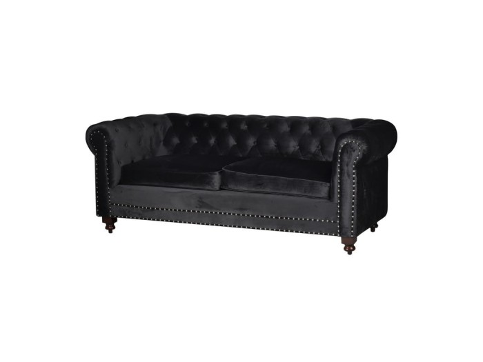 Artekko Prob Καναπές Διθέσιος Βελούδινος Μαύρος με Καπιτονέ Πλάτη και Καμπαράδες (198x90x78)cm