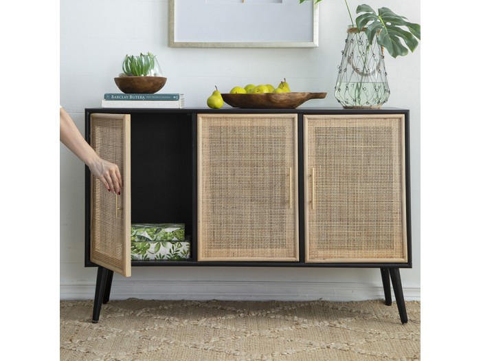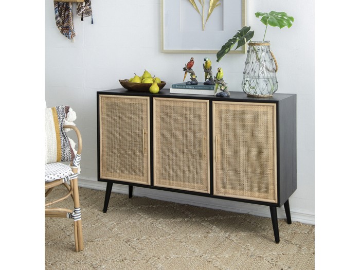 Artekko Traec Μπουφές Ξύλινος Μαύρος με 3 Πόρτες Φυσικού Χρώματος (120x38.5x78)cm