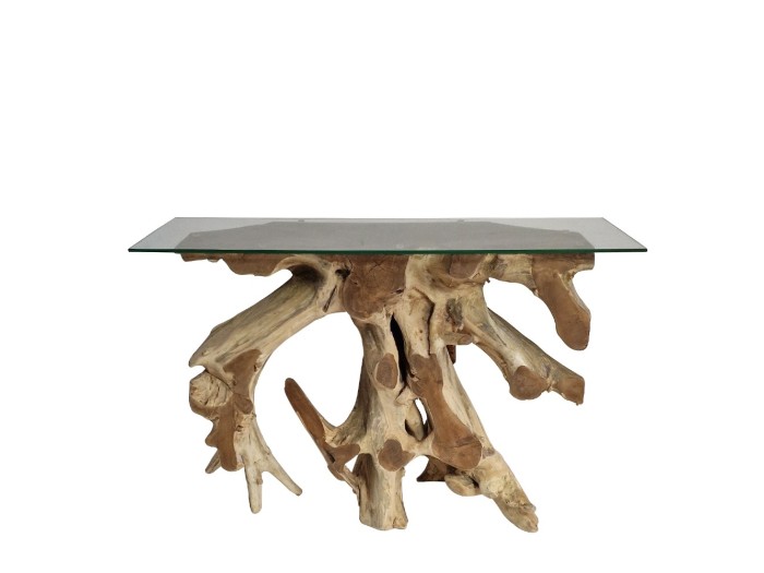 Artekko Munggur Ξύλινη Κονσόλα από Ρίζα Teak σε Ανοιχτό Καφέ (100x40x78)cm με Τζάμι (120x45)cm