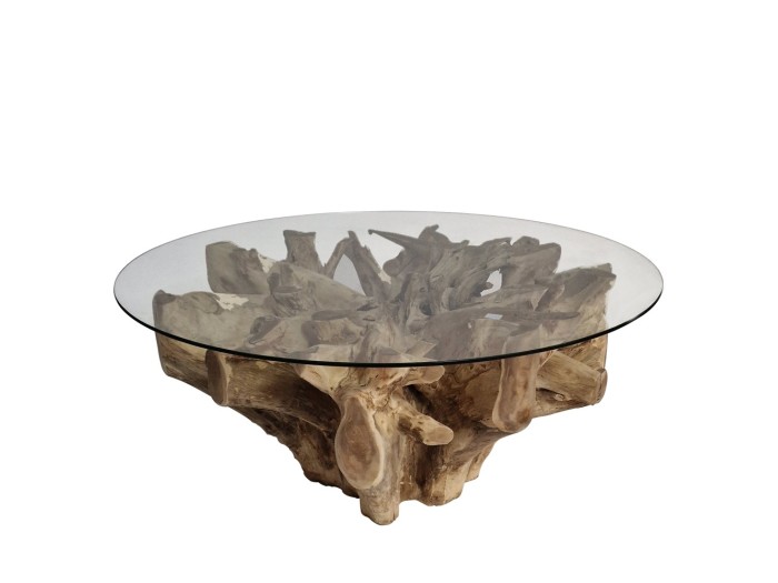 Artekko Munggur Ξύλινο Τραπέζι Σαλονιού από Ρίζα Teak σε Φυσική Απόχρωση (Φ100x51)cm με Τζάμι Φ120cm