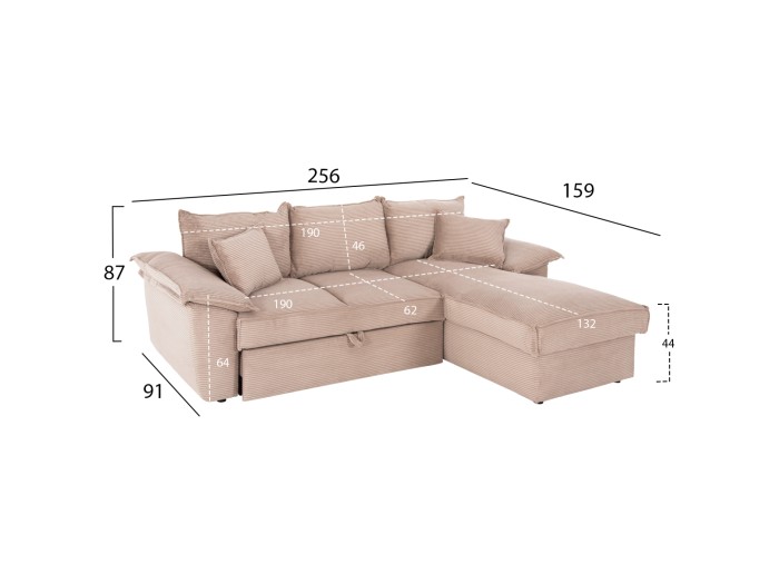 Ο ALDO είναι ένας καινούργιος 3-θέσιος καναπές σε διαμόρφωση δεξιάς γωνίας (όπως τον κοιτάς). Είναι επενδυμένος με όμορφο ριγωτό (στυλ κοτλέ) ύφασμα σε ΜΠΕΖ χρώμα ενώ το κομμάτι που σχηματίζει την γωνία ενώνεται με τον κυρίως καναπέ με κατακόρυφους αναρτήρες πάνελ. Διαθέτει 3 μαξιλάρια πλάτης, ενώ το κάθισμα διαθέτει γεμίσματα αφρού μεσαίας σκληρότητας σε συνδυασμό με οριζόντια (ζιγκ-ζαγκ) ελατήρια προσφέροντας απαράμιλλη άνεση. Το χαρακτηριστικό, όμως, που κάνει αυτόν τον υπέροχο καναπέ να ξεχωρίζει, είναι ότι με δύο απλές κινήσεις γίνεται διπλό κρεβάτι, προσφέροντας μια ποιοτική λύση όπου και όταν χρειαστεί! Απλά τραβάτε με ένα υφασμάτινο χερούλι το «ράντζο» που υπάρχει κάτω από το κυρίως κάθισμα του καναπέ και το ανασηκώνετε. Και σαν να μην έφτανε αυτό, ακριβώς κάτω από το κάθισμα της γωνίας του καναπέ, υπάρχει αποθηκευτικός χώρος που ολοκληρώνει την πρακτικότητα αυτού του μοναδικού επίπλου! Και φυσικά, σας προσφέρουμε αυτόν τον καναπέ με εγγύηση σκελετού 3 ετών! Ακόμα το σκέφτεστε;