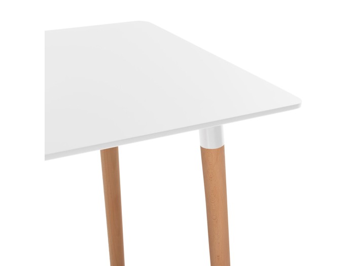 Το ΗΜ008.01 είναι ένα ορθογώνιο τραπέζι για την κουζίνα, με επιφάνεια από MDF σε χρώμα ΛΕΥΚΟ. Τα 4 πόδια είναι ξύλινα σε φυσικό χρώμα και «ανοίγουν» προς τα κάτω. Πρόκειται για ένα απλό τραπέζι σε κανονική διάσταση, αλλά με ιδιαίτερα καλαίσθητο χρωματισμό, με αποτέλεσμα να μπορεί να ταιριάξει αισθητικά σχεδόν σε κάθε ανάλογο χώρο.