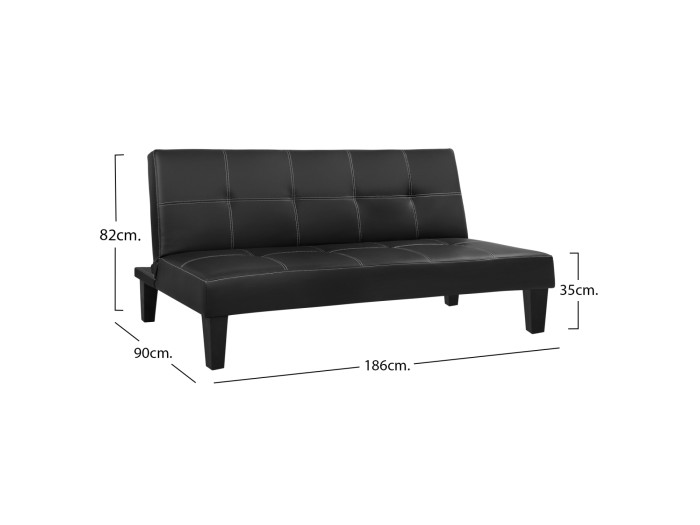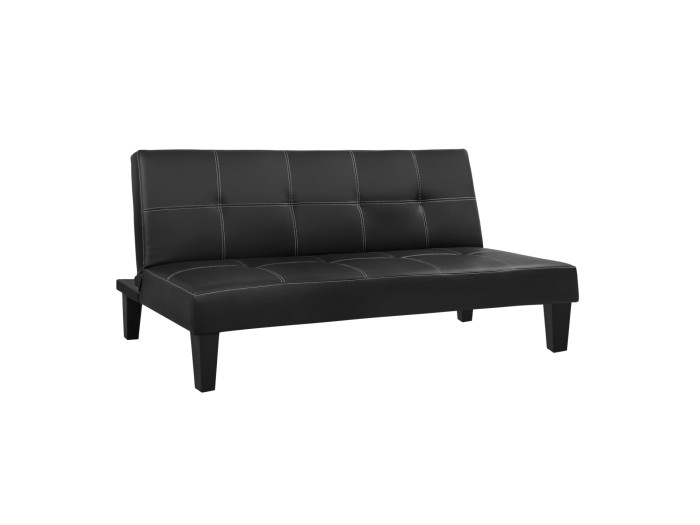 Καναπές κρεβάτι σε μοντέρνο στυλ με λιτές γραμμές από μαύρο PU με γαζιά, όμορφος και βολικός, μπορεί ανάλογα με τις ανάγκες σας να μετατραπεί με μια κίνηση σε κρεβάτι.