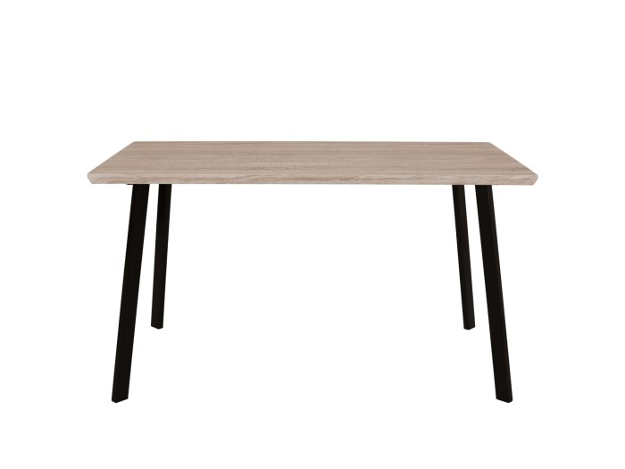 Τραπέζι τραπεζαρίας OFIRA με χρωματισμό επιφάνειας Sonoma και χρωματισμό βάσης και ποδιών μαύρο. Πρόκειται για ένα ελκυστικό και μοντέρνο τραπέζι με στρογγυλεμένες άκρες και φαλτσαριστό κατέβασμα (προς τα μέσα) στις άκρες περιμετρικά. Είναι μια καταπληκτική λύση για κάθε σπίτι που ακολουθεί minimal διακόσμηση.