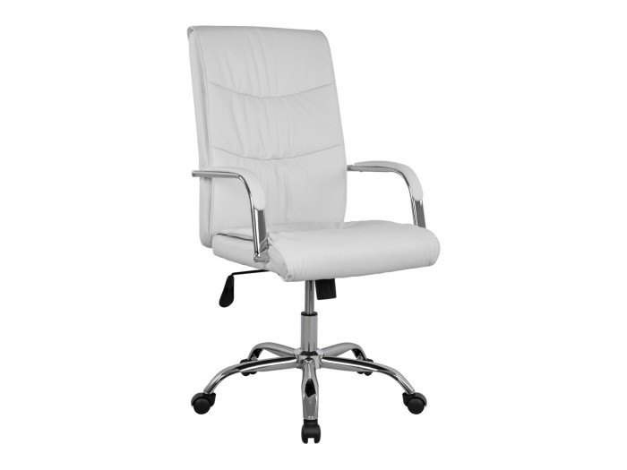 Διευθυντική καρέκλα γραφείου “JACOB” σε λευκό χρώμα. Μια «πλούσια» καρέκλα γραφείου με ψηλά επίπεδα inox μπράτσα με στρογγυλεμένες άκρες , επενδυμένα με μια λεπτή στρώση αφρολέξ σε PU δέρμα. Η πλάτη είναι ανατομική και ψηλή με «μαξιλάρι» από αφρώδη υλικά για άνεση κατά την χρήση και υποστηρίζει ολόκληρο τον κορμό σας, ενώ είναι επενδυμένη με υψηλής ποιότητας PU δέρμα , όπως επίσης και το φαρδύ και αναπαυτικό κάθισμα με την αναπαυτική επιφάνεια. Η βάση είναι inox σε σχήμα «αστέρι».