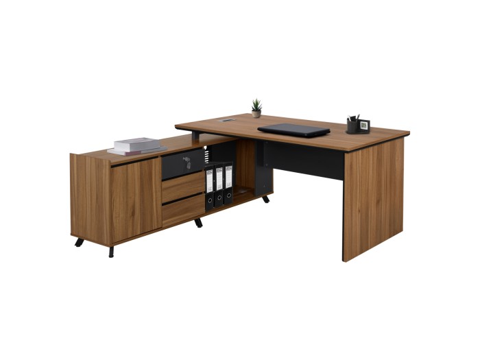 Επαγγελματικό γραφείο με αναστρέψιμη γωνία, κατασκευασμένο από μελαμίνη υψηλής ποιότητας, σε γκρι και honey oak απόχρωση.