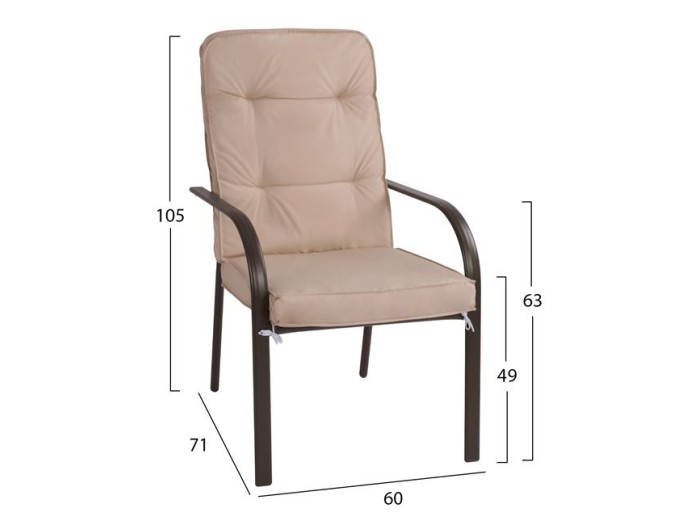 Διαθέτουν μαξιλάρια σε μπεζ απόχρωση, με φερμουάρ για την πλάτη και το κάθισμα, πάχους 8 εκ.