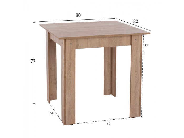 Το ΗΜ2427.01 είναι ένα τετράγωνο τραπέζι από μελαμίνη σε SONOMA OAK (βελανιδί ανοιχτό) χρώμα. Τα 4 πόδια είναι επίσης από μελαμίνη και ιδιαίτερα στιβαρά ενώ στο κάτω μέρος διαθέτουν πλαστικές τάπες για την καλύτερη προστασία των δαπέδων αλλά και των ποδιών του τραπεζιού. Πρόκειται για ένα απλό τραπέζι σε κανονική διάσταση, που μπορεί να εξυπηρετήσει μέχρι 4 άτομα.