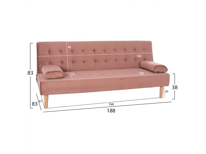 Καναπές κρεβάτι, επενδεδυμένος με βελούδινο ύφασμα σε σάπιο μήλο απόχρωση 188X83X83Y εκ.