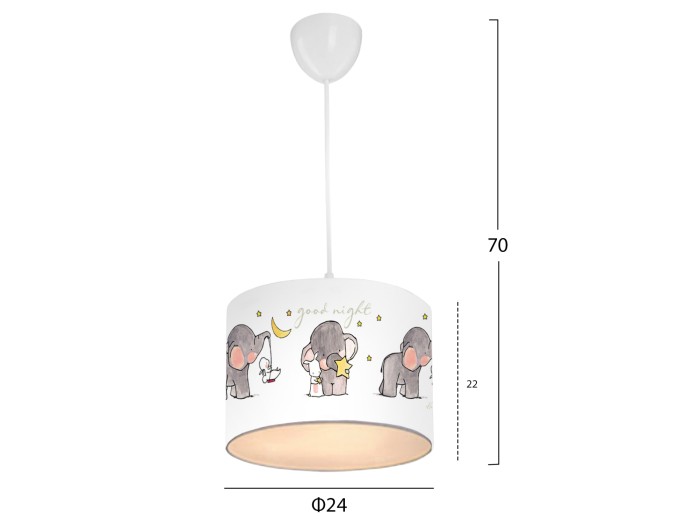 Παιδικό φωτιστικό οροφής,υφασμάτινο, σε λευκή απόχρωση,με σχέδιο Elephant.