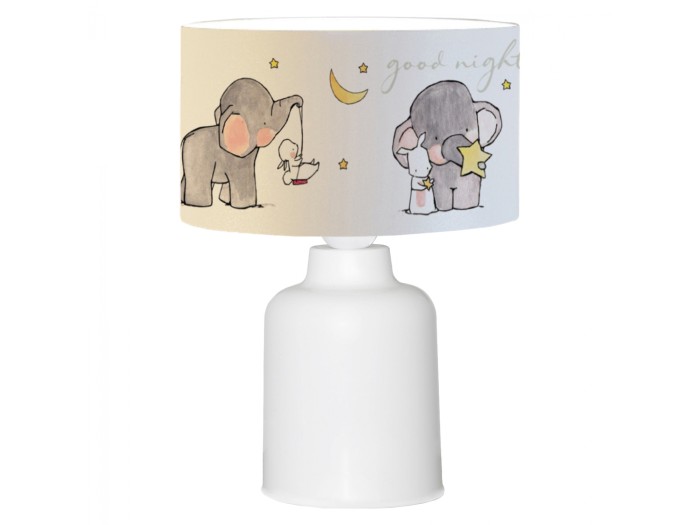 Παιδικό επιτραπέζιο φωτιστικό,υφασμάτινο, σε λευκή απόχρωση,με σχέδιο Elephant.