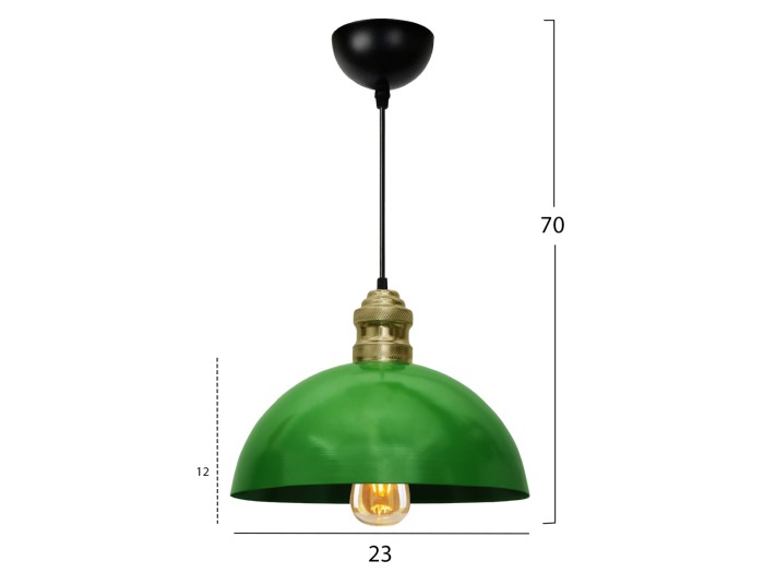 Πρόκειται για ένα όμορφο φωτιστικό σε κλασική γραμμή αλλά με μοντέρνα αισθητική και εμφάνιση. Το πράσινο χρώμα του φωτιστικού αιχμαλωτίζει τα βλέμματα, αλλά ταυτόχρονα απαιτεί και ιδιαίτερη διακοσμητική συνοχή για να αναδείξει πλήρως τις αισθητικές αρετές του. Το «καπέλο» σε σχήμα μανιτάρι δίνει μια επικεντρωμένη δέσμη φωτός, καθιστώντας το φωτιστικό ιδανικό για τραπεζαρίες ή μπαρ, είτε στο σπίτι σας είτε στον αντίστοιχο επαγγελματικό σας χώρο.