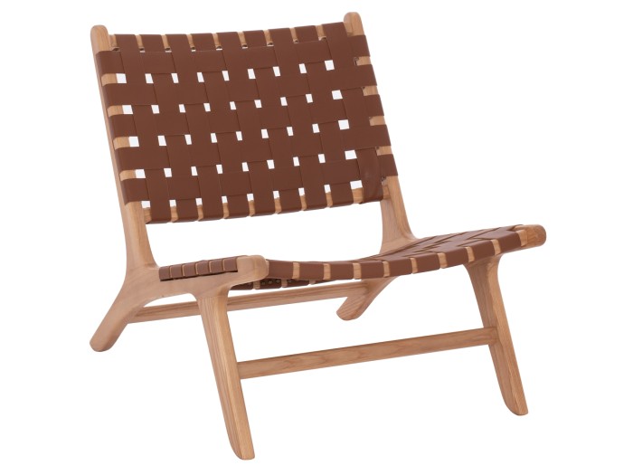 Η πολυθρόνα εσωτερικού χώρου FELIPE είναι μια κοντή και φαρδιά πολυθρόνα χωρίς μπράτσα απαράμιλλης ομορφιάς. Ο πανέμορφος σκελετός της είναι από ποιοτικό ξύλο, ενώ τόσο η μεσαίου ύψους πλάτη όσο και το φαρδύ κάθισμα αποτελούνται από τετραγωνισμένα πλεγμένο PU δέρμα άριστης ποιότητας. Οι σχεδιαστικές γραμμές της πολυθρόνας είναι κομψές και με γνώμονα την άνεση του χρήστη, με χαρακτηριστικό παράδειγμα το κοντό κάθισμα με την έντονη κλίση και την πλάτη με την επίσης χαρακτηριστική κλίση προς τα πίσω. Το ξύλο έχει το φυσικό του χρώμα που μπορεί άνετα να συνδυαστεί με διάφορα διακοσμητικά μοτίβα ενώ το PU δέρμα είναι ΚΑΦΕ. Η πολυθρόνα θα αποτελέσει το κέντρο ενδιαφέροντος οπουδήποτε και αν τοποθετηθεί, είτε σε χώρους εστίασης, είτε σε lounge bars, είτε σε ξενοδοχεία, ακόμα και στο σπίτι.
