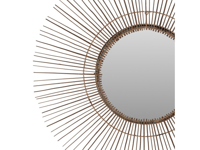 O καθρέπτης ΗΜ7732 είναι πραγματικά ένα εντυπωσιακό κομμάτι στην διακόσμηση του χώρου σας! Το design του είναι μοναδικό με την συμμετρική κυκλική διάταξη των sticks από κοκοφοίνικα, τα οποία στο κέντρο τους «φιλοξενούν» τον καθρέπτη. Τα ξύλα είναι στο φυσικό τους χρώμα και οι διαστάσεις όλης της κατασκευής είναι ικανοποιητικές.