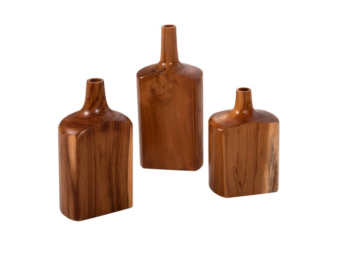 Τα μπουκάλια είναι κατασκευασμένα από ξύλο ΤΕΑΚ. Το ΤΕΑΚ είναι ο πιο δημοφιλής τύπος σκληρού ξύλου. Είναι χρώματος κίτρινο έως σκούρο καφέ, εξαιρετικά βαρύ, υψηλής αντοχής, ανθεκτικό στις καιρικές συνθήκες, ανθεκτικό στο σκέβρωμα και δεν αποσυντίθεται. Συχνά, τα νερά του ξύλου του είναι έντονα και σε ευθεία. Χρησιμοποιείται για πληθώρα κατασκευών εσωτερικού χώρου.