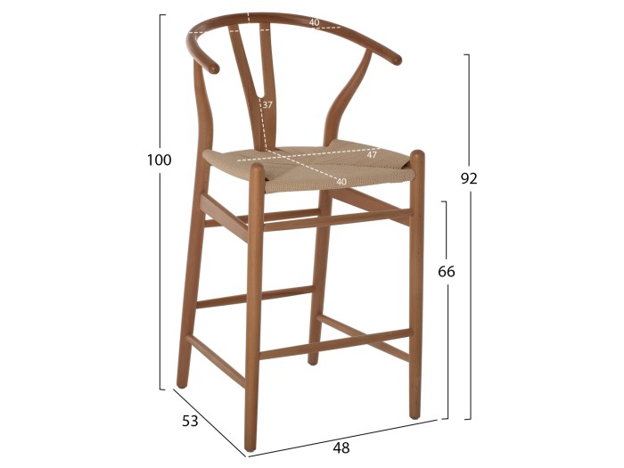 Ολόκληρο το σκαμπό είναι κατασκευασμένο από ποιοτικό μασίφ ξύλο ΟΞΙΑΣ. Το μασίφ συνιστά ένα είδος ξύλου, καθαρό και ατόφιο, που παραδοσιακά χρησιμοποιούν οι μαραγκοί για την κατασκευή επίπλων. Το μασίφ είναι η πιο ακριβή επιλογή σε είδος ξύλου αλλά ξεχωρίζει για την διαχρονική αισθητική του. Το αποτέλεσμα που προσφέρει στον κάτοχό του είναι πραγματικά μοναδικό.