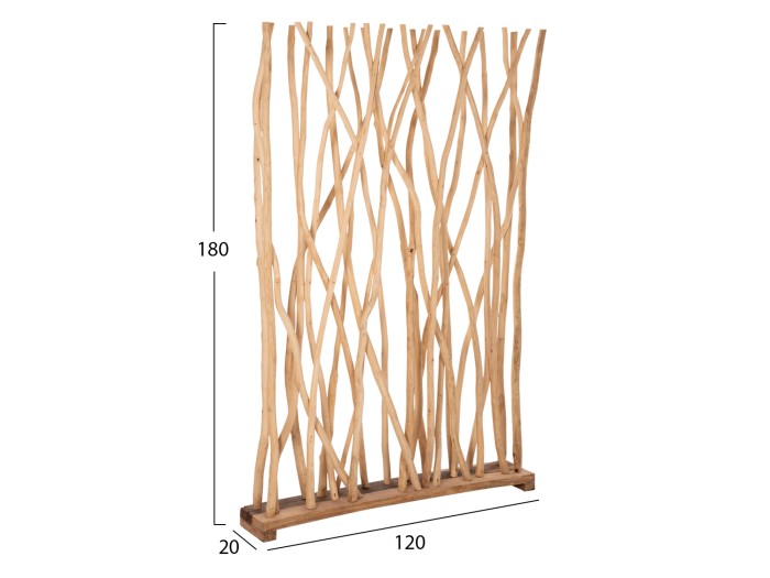 Το παραβάν έχει γίνει από φυσικά μασίφ κλαδιά του δέντρου ΤΕΑΚ. Όταν αναφερόμαστε σε μασίφ, εννοούμε τα ξύλα που κατασκευάζονται ολοκληρωτικά από τον κορμό δέντρου. Το μασίφ είναι η πιο ακριβή επιλογή σε είδος ξύλου αλλά ξεχωρίζει για την διαχρονική αισθητική του.