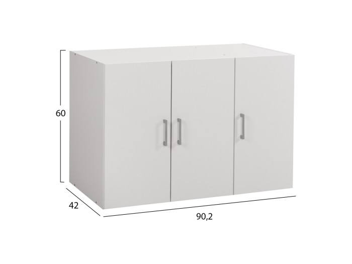 ΗΜ351.05----Το ALIVIA είναι ένα πατάρι για 3-φυλλη ντουλάπα. Πρόκειται για ένα πρακτικότατο συμπλήρωμα που έχει φτιαχτεί με γνώμονα την όσο το δυνατόν καλύτερη εκμετάλλευση του χώρου. Οι διαστάσεις είναι ικανοποιητικές και είναι χωρισμένο σε δύο διαμερίσματα. Η μία πλευρά είναι μεγαλύτερη και κλείνει με δύο πόρτες ενώ η μικρότερη πλευρά κλείνει με μία πόρτα. Και οι 3 πόρτες έχουν κάθετα μεταλλικά χερούλια, ενώ το εσωτερικό των διαμερισμάτων είναι κενό. Δεν διαθέτουν ράφια ή κάτι άλλο και ενδείκνυνται για αποθήκευση ογκωδών αντικειμένων. Το πατάρι είναι κατασκευασμένο από μελαμίνη σε ΛΕΥΚΟ χρώμα και εσείς πρέπει απλά να το ταιριάξετε με την υπάρχουσα ντουλάπα σας, τόσο χρωματικά, όσο και από πλευράς διαστάσεων.