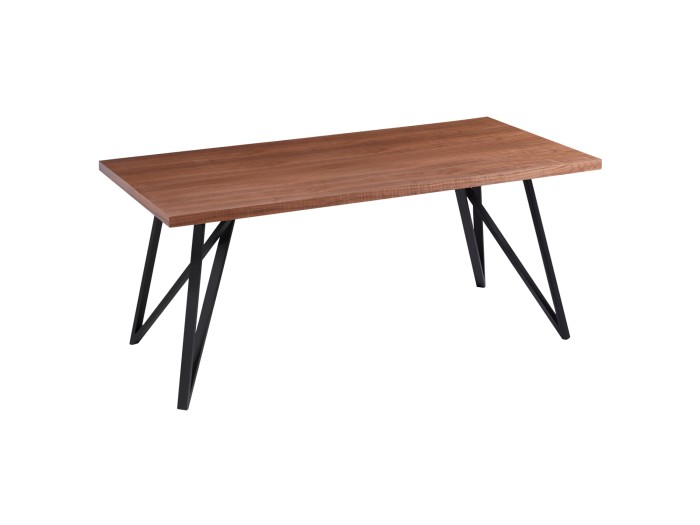 Το GROW είναι ένα ορθογώνιο τραπέζι για την τραπεζαρία, με επιφάνεια από MDF με καπλαμά από ξύλο φράξου σε χρώμα σκούρο ΚΑΡΥΔΙ και στυλ ρουστίκ. Η επιφάνεια αυτή στηρίζεται σε 4 όμορφα μαύρα μεταλλικά πόδια σε σχέδιο ανάποδου Λ. Πρόκειται για ένα επιβλητικό τραπέζι με όμορφη διχρωμία, με αποτέλεσμα να μπορεί να ταιριάξει αισθητικά σχεδόν σε κάθε ανάλογο χώρο.