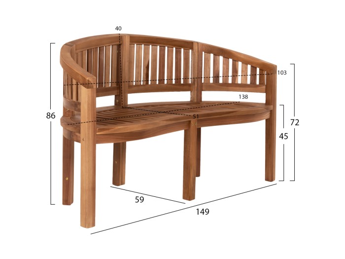 Το 2-θέσιο παγκάκι εξωτερικού χώρου CAPO είναι πανέμορφο. Ολόκληρο το παγκάκι είναι κατασκευασμένο από ποιοτικό ξύλο στο φυσικό του χρώμα ενώ δεν διαθέτει μαξιλαράκια καθίσματος. Το κύριο χαρακτηριστικό του, όμως, είναι ότι η πλάτη είναι ημικυκλική και καταλήγει σε μπράτσα στις δύο πλευρές. Ιδανικό τόσο για το σπίτι, όσο και για επαγγελματικούς χώρους, ακόμα και beach bars κτλ.