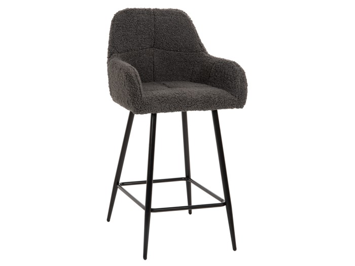 Επαγγελματικό σκαμπό bar STRIKE σε ΓΚΡΙ χρώμα με ΜΑΥΡΑ μεταλλικά πόδια. Τα πόδια ενώνονται μεταξύ τους περίπου στη μέση τους με μια μεταλλική ράγα. Το σκαμπό είναι λιτό, ποιοτικό και κομψό στην όψη, και σίγουρα τραβάει τα βλέμματα με το απαλό και ζεστό ύφασμα TEDDY που είναι επενδυμένο. Είναι ψηλό με πλάτη η οποία αγκαλιάζει το σώμα ενώ και το κάθισμα έχει υπερυψωμένα πλαϊνά που δημιουργούν χαμηλά μπράτσα, πράγμα που επιτείνει τον ιδιαίτερο χαρακτήρα αυτού του σκαμπό.