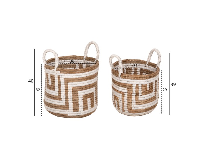 Τα διακοσμητικά καλαθάκια ΗΜ7846.01 θα δώσουν μια άλλη «οπτική» στον χώρο σας. Πρόκειται για 2 καλάθια με χερουλάκια σε κλασική γραμμή σε διαφορετικές διαστάσεις φτιαγμένα από MENDONG GRASS και το χρώμα τους είναι ΛΕΥΚΟ και ΦΥΣΙΚΟ.
