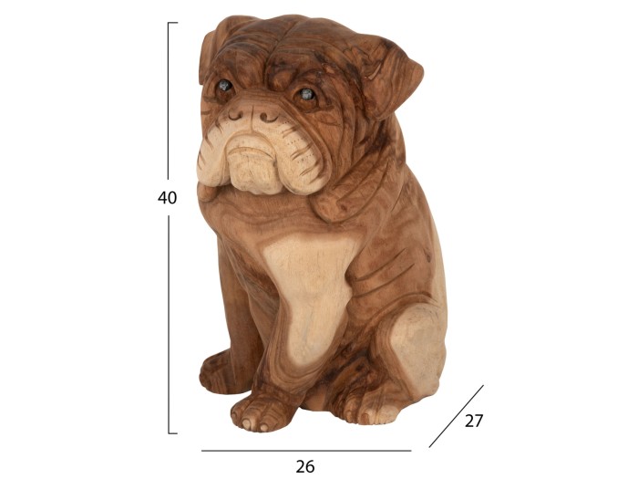 Το διακοσμητικό δαπέδου DOZER BULLDOG είναι ένα όμορφο ξύλινο κομμάτι σκαλισμένο με λεπτομέρεια. Πρόκειται για την μορφή ενός (σκύλου) bulldog σε ΦΥΣΙΚΟ χρώμα του ξύλου. Το διακοσμητικό αυτό σίγουρα θα τραβήξει τα βλέμματα και είναι ιδανικό τόσο για το σπίτι, όσο και για επαγγελματικούς χώρους.