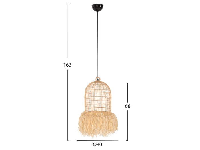 HΜ7891--Αν επιθυμείτε να διακοσμήσετε το χώρο σας με ένα φωτιστικό σε μοντέρνο στυλ, αυτή η καινούργια προσθήκη στην γκάμα μας θα σας ενθουσιάσει. Είναι ένα μονόφωτο φωτιστικό με καπέλο σε σχήμα κλουβιού με κρόσια στο κάτω μέρος, από ίνες φύλλων φοίνικα σε ΦΥΣΙΚΟ χρώμα. Είναι πανέμορφο και σίγουρα μπορεί να αλλάξει προς το καλύτερο την εικόνα του χώρου σας.