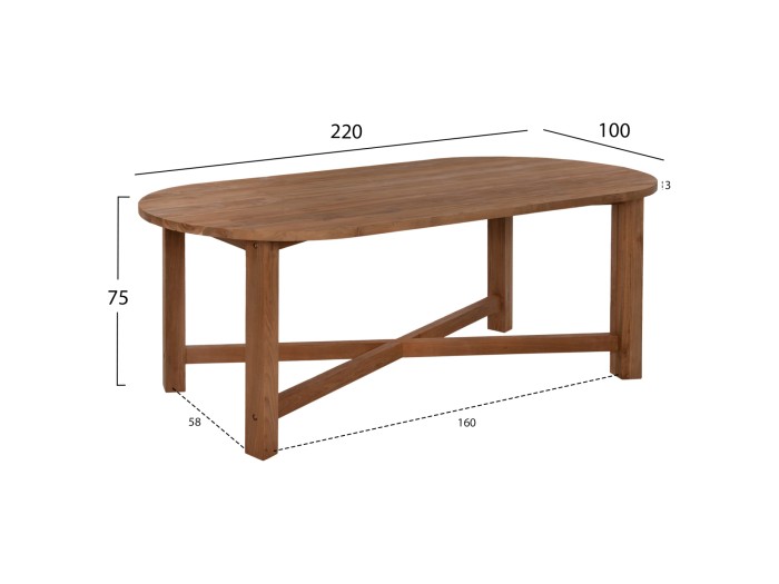 Το τραπέζι είναι κατασκευασμένο από μασίφ ανακυκλωμένο ξύλο ΤΕΑΚ. Το μασίφ συνιστά ένα είδος ξύλου, καθαρό και ατόφιο, και είναι η πιο ακριβή επιλογή σε είδος ξύλου και ξεχωρίζει για την διαχρονική αισθητική του. Το αποτέλεσμα που προσφέρει στον κάτοχό του είναι πραγματικά μοναδικό.