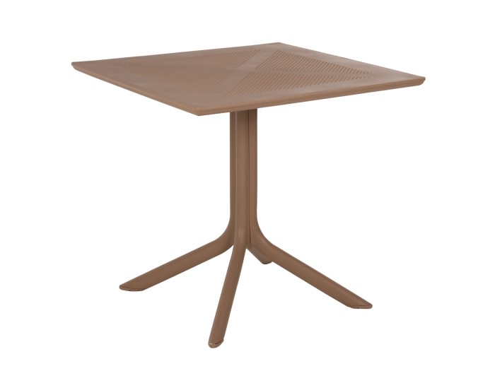 Τραπέζι πολυπροπυλενίου σε ΚΑΠΟΥΤΣΙΝΟ χρώμα. Ιδανική πρόταση για χρήση σε εξωτερικούς χώρους, είτε επαγγελματικούς (χώροι δεξιώσεων, εταιρείες catering, κλπ.) είτε για το σπίτι. Το τραπέζι αποτελείται από μια «τρυπητή» τετράγωνη επιφάνεια, ενώ η στήριξη γίνεται με μια κολώνα στο κέντρο που καταλήγει σε 4 πόδια («νύχια»).