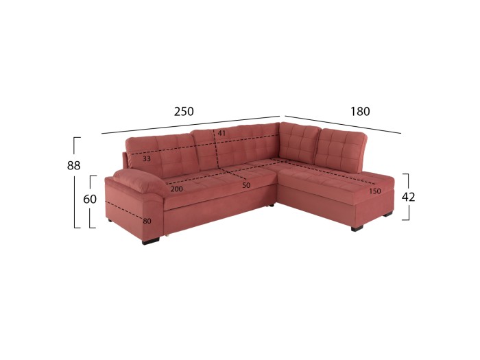 Διαστάσεις γωνίας: 250x80-180x73-88Υ εκ.