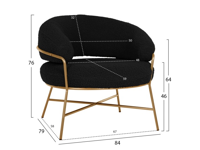 Η πολυθρόνα TRUDI σε ΜΑΥΡΟ χρώμα με μεταλλικό σκελετό ΧΡΥΣΟ, είναι πανέμορφη. Το χαρακτηριστικό που κάνει αυτή την πολυθρόνα να ξεχωρίζει είναι ότι είναι στρογγυλή με την πλάτη να είναι ξεχωριστή από το κάθισμα. Όλη η πολυθρόνα είναι επενδυμένη με εξαιρετικής ποιότητας ζεστό ΜΠΟΥΚΛΕ ύφασμα, πράγμα που την κάνει όμορφη και σημείο αναφοράς στο σαλόνι σας. Συνδυάζει στιλ και άνεση και μπορείτε να την τοποθετήσετε δίπλα στο τζάκι, σε ένα παράθυρο ή ακόμα και στο υπνοδωμάτιό σας, και να αφεθείτε στην «αγκαλιά» της.