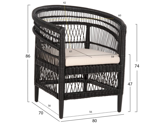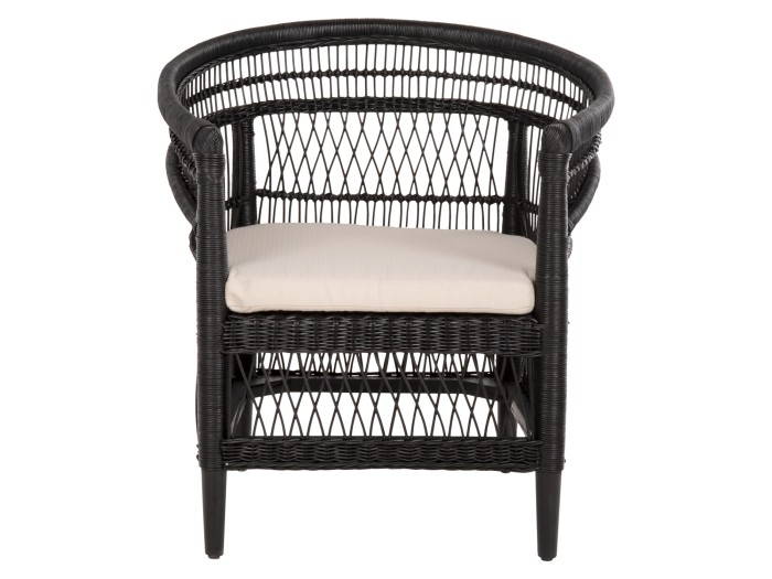 Η πολυθρόνα MALAWI είναι πανέμορφη! Μοντέρνα, άνετη και σταθερή με κυρίαρχο χρώμα το ΜΑΥΡΟ. Το ημικυκλικό κάθισμα της πολυθρόνας είναι άνετο και διαθέτει ΛΕΥΚΟ μαξιλάρι μέτριας σκληρότητας ενώ η πολυθρόνα δίνει την αίσθηση ότι αγκαλιάζει το σώμα. Αυτό όμως που τραβάει τα βλέμματα σε αυτή την πολυθρόνα είναι ότι η πλάτη με τα μπράτσα αποτελούν μια συνεχόμενη κατασκευή με επένδυση από RATTAN που δίνει μια αίσθηση μοναδικότητας στην πολυθρόνα!