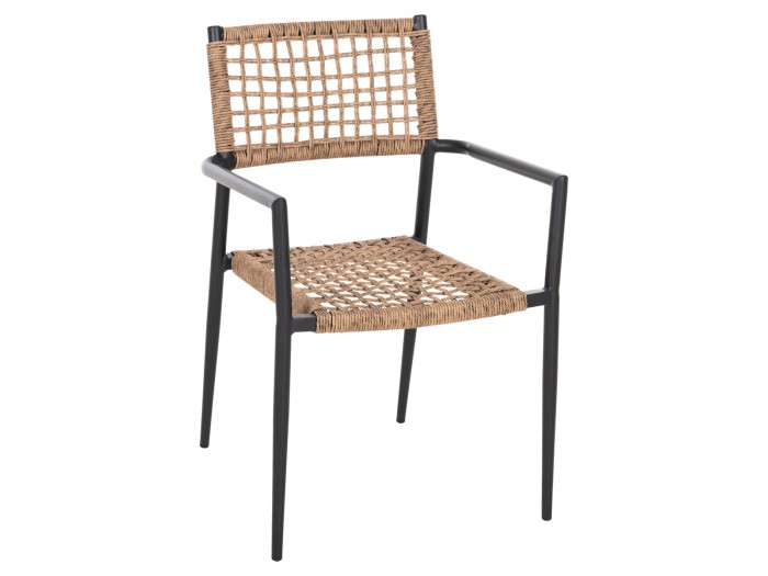 Η πολυθρόνα είναι επενδυμένη με πολυεστερικό RATTAN σε «τυλιχτή» μορφή (twisted) που μοιάζει με σχοινί.