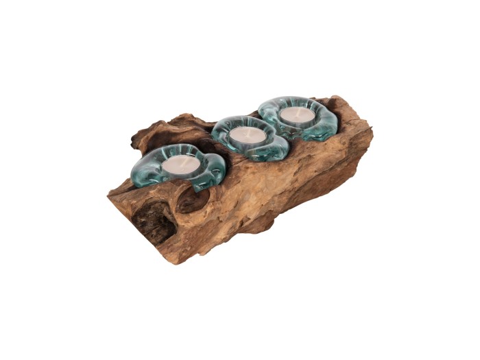 Το επιτραπέζιο διακοσμητικό HM4282 είναι μια βάση για 3 κεράκια ρεσό κατασκευασμένη από μασίφ ξύλο ΤΕΑΚ. Οι βάσεις για τα ρεσό είναι από γυαλί. Οι οπαδοί του ρουστίκ στυλ στην διακόσμηση θα ενθουσιαστούν με αυτή την πρόταση.