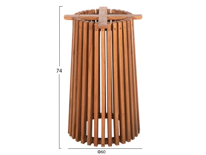Η FRANTZ είναι βάση/πόδια για στρογγυλό τραπέζι, με ικανοποιητικές διαστάσεις σε φυσικό χρώμα ξύλου. Αυτή η βάση είναι μια ξύλινη κατασκευή με πολλές δοκούς σε κυκλική-κωνική διάταξη που ενώνονται μεταξύ τους με δακτυλίους επάνω και κάτω στην εσωτερική πλευρά.