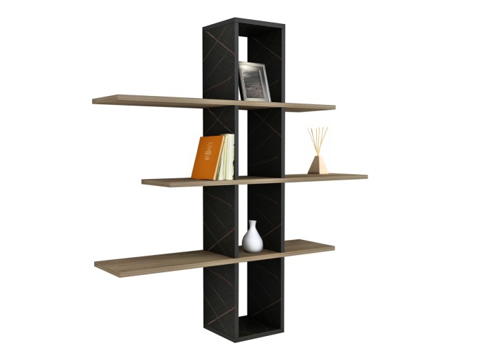 Η ραφιέρα τοίχου DOMINIC είναι μια μοντέρνα πρόταση για το γραφείο σας ή οπουδήποτε αλλού θέλετε να τοποθετήσετε ένα τέτοιο όμορφο έπιπλο. Διαθέτει μια κεντρική στήλη σε ΜΑΥΡΟ ΜΑΡΜΑΡΟ χρώμα και 3 ράφια που την διαπερνούν σε ασύμμετρη διάταξη σε ΦΥΣΙΚΟ χρώμα. Συνδυάστε το με ένα ωραίο φωτιστικό δαπέδου ή μια πολυθρόνα με τραπεζάκι και φτιάξτε μια πανέμορφη γωνιά χαλάρωσης.