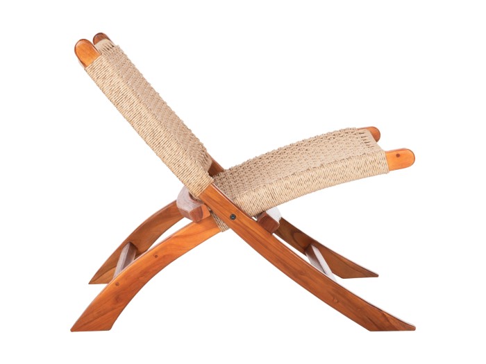 Η καρέκλα FERM είναι μια καρέκλα σχετικά κοντή χωρίς μπράτσα, αλλά με όμορφο design. Το κύριο χαρακτηριστικό αυτής της καρέκλας είναι ότι «διπλώνει» και αποθηκεύεται εύκολα πιάνοντας λίγο χώρο. Ο σκελετός της είναι από ποιοτικό ξύλο, ενώ τόσο η χαμηλή πλάτη όσο και το φαρδύ κάθισμα είναι κατασκευασμένα από σχοινί VIRO άριστης ποιότητας. Το ξύλο έχει το φυσικό του χρώμα που μπορεί άνετα να συνδυαστεί με διάφορα διακοσμητικά μοτίβα. Η καρέκλα θα αποτελέσει το κέντρο ενδιαφέροντος οπουδήποτε και αν τοποθετηθεί.